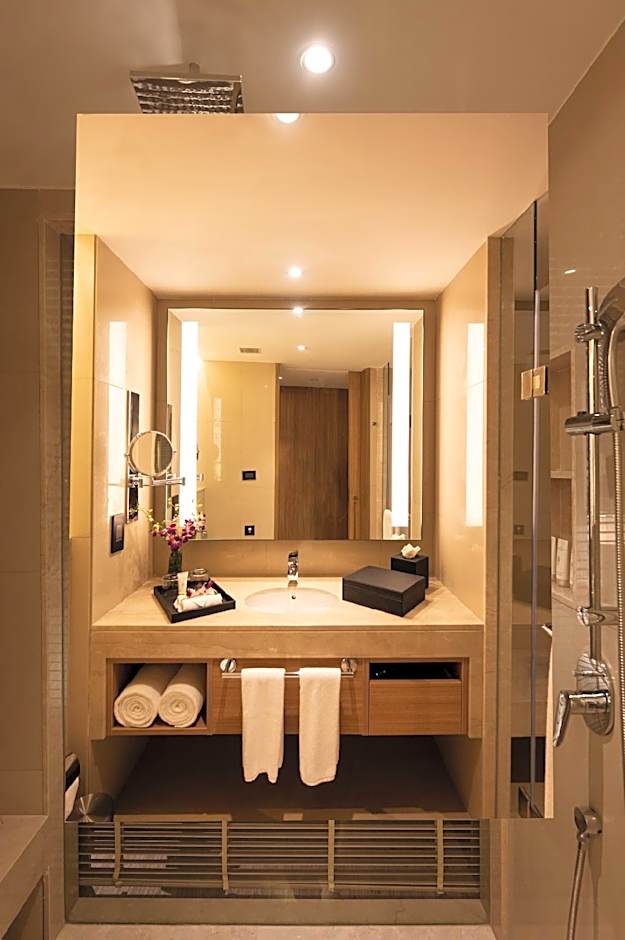 Renovated room with air conditioning, an LCD TV, a fridge and a desk. Nightwear is provided, and the bathroom includes a bathtub and Shiseido body soap.